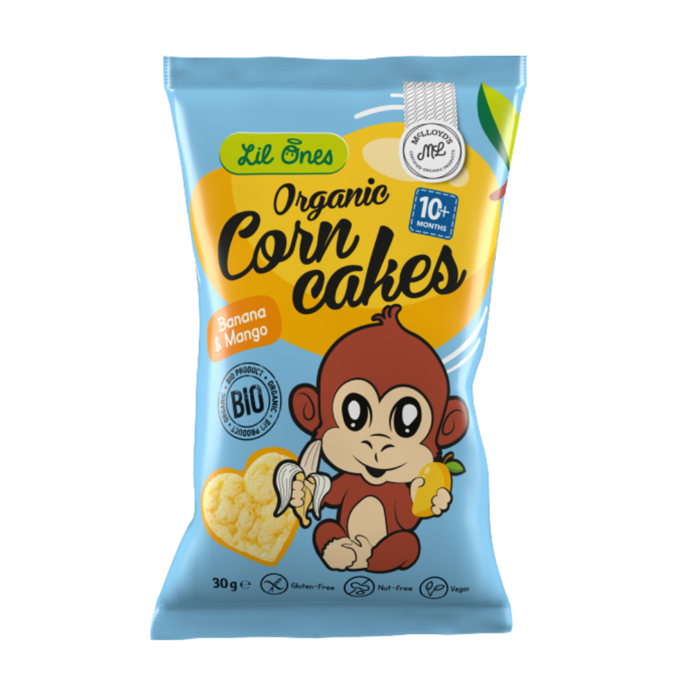 مقرمشات الذرة العضوية للأطفال McLLOYD'S Lil Ones بشكل قلوب صغيرة، مناسبة للأطفال من عمر 10 أشهر. مخبوزة بنكهة طبيعية من الموز والمانجو، وخالية من الملح والسكر المضافين – حيث تحتوي فقط على السكريات الطبيعية. مصنوعة من سميد الذرة العضوي الغني بالألياف، وتُعد وجبة خفيفة مثالية ومغذية للأطفال في البيت، الحضانة، المدرسة أو أثناء اللعب والنشاطات الرياضية. هذه المقرمشات اللطيفة ليست لذيذة فحسب، بل أيضًا نباتية وخالية من الجلوتين، اللاكتوز، والمكسرات، ما يجعلها خيارًا آمنًا وصحيًا لصغارك. امنح أطفالك لحظات من المتعة والقرمشة الصحية