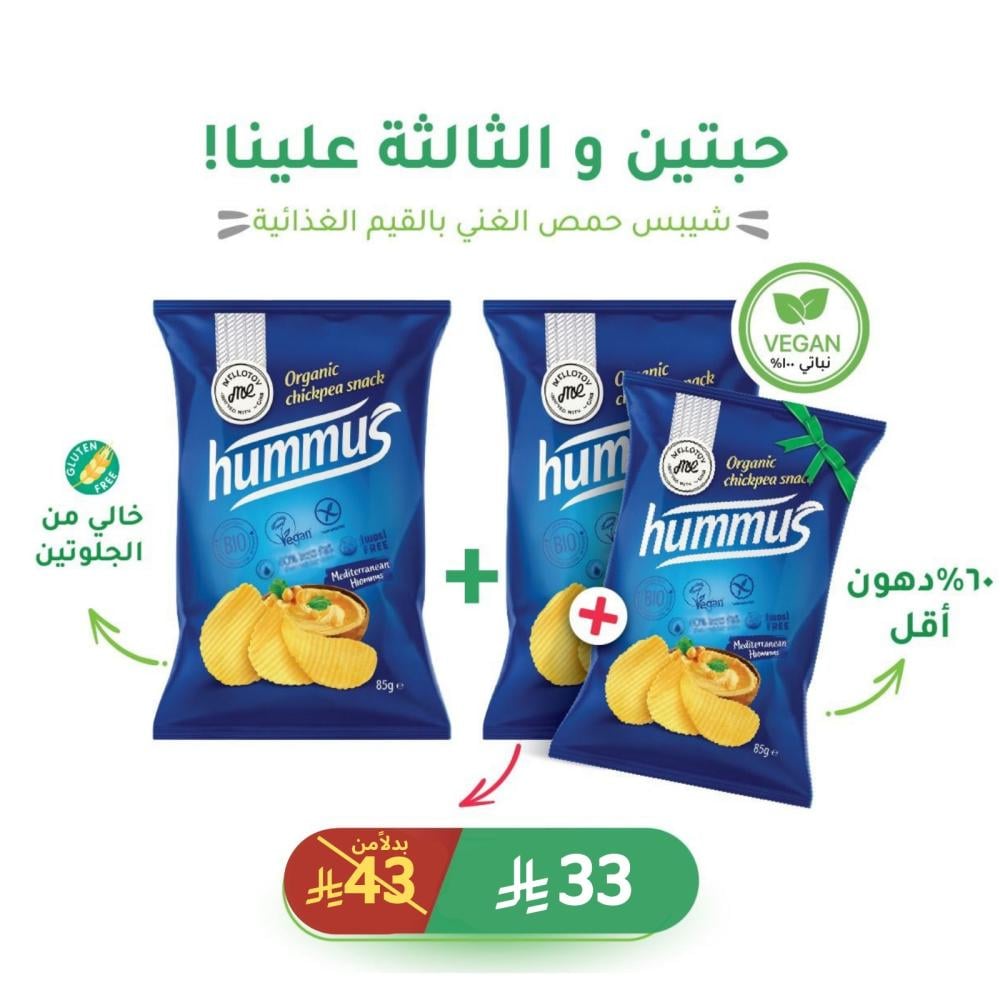 شيبس بـ الحمص 60% دهون أقل (أطلب 2 و الـ 3 علينا)!